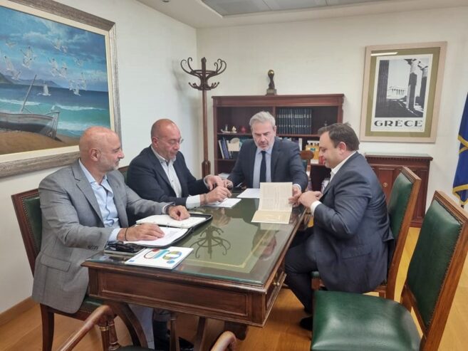 Σύσκεψη πραγματοποιήθηκε σήμερα μεταξύ του Δημάρχου Ανατολικής Σάμου κ. Στάντζου με τον Γενικό Γραμματέα του ΕΟΤ κ. Φραγκάκη και με την παρουσία του Προέδρου της Ένωσης Ξενοδόχων Σάμου κ. Βαλή και του Ειδικού Γραμματέα Συντονισμού Εμπλεκόμενων Φορέων του Υπουργείου Μετανάστευσης & Ασύλου κ. Κωνσταντίνου, με θέμα την καλύτερη αξιοποίηση των πόρων που θα διατεθούν από το Υπουργείο για την προβολή της Σάμου.