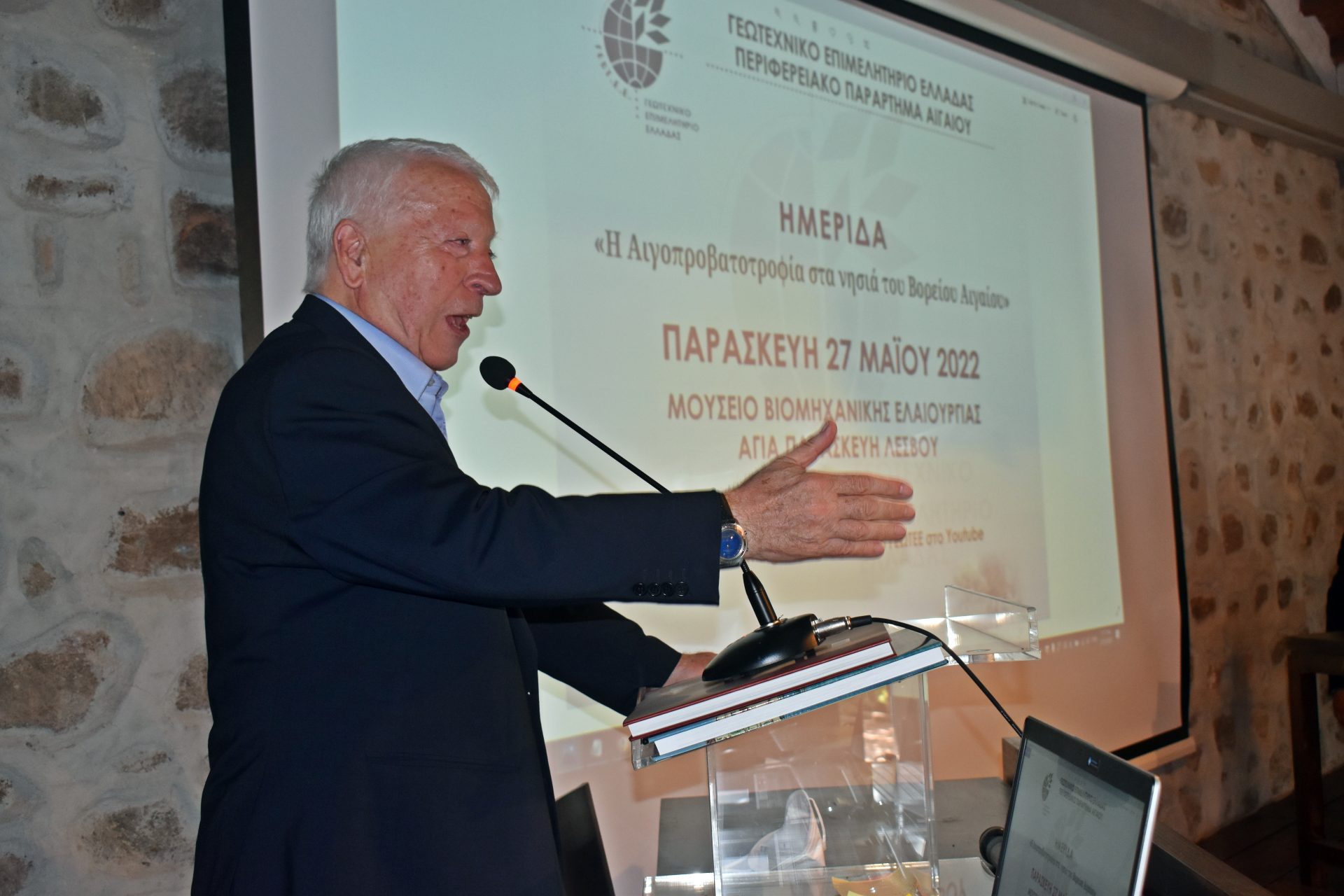 Ο Περιφερειάρχης Βορείου Αιγαίου Κωνσταντίνος Μουτζούρης παρευρέθηκε και απεύθυνε χαιρετισμό στην σημερινή ημερίδα που διοργάνωσε το παράρτημα Αιγαίου του ΓΕΩΤΕΕ στην αίθουσα του Μουσείου Βιομηχανικής Ελαιουργίας στην Αγία Παρασκευή με θέμα: «Η Αιγοπροβατοτροφία στα νησιά του Βορείου Αιγαίου».