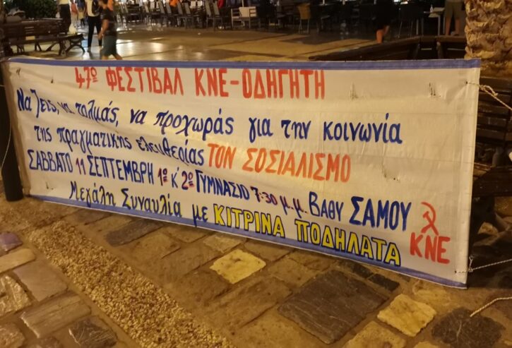 Στην τελική ευθεία βρίσκονται οι προετοιμασίες για το 47ου Φεστιβάλ ΚΝΕ – Οδηγητή στο Βαθύ της Σάμου. Μέλη και φίλοι της ΚΝΕ «ανεβάζουμε στροφές» ώστε να φτάσει παντού το κάλεσμα για το Φεστιβάλ μας !