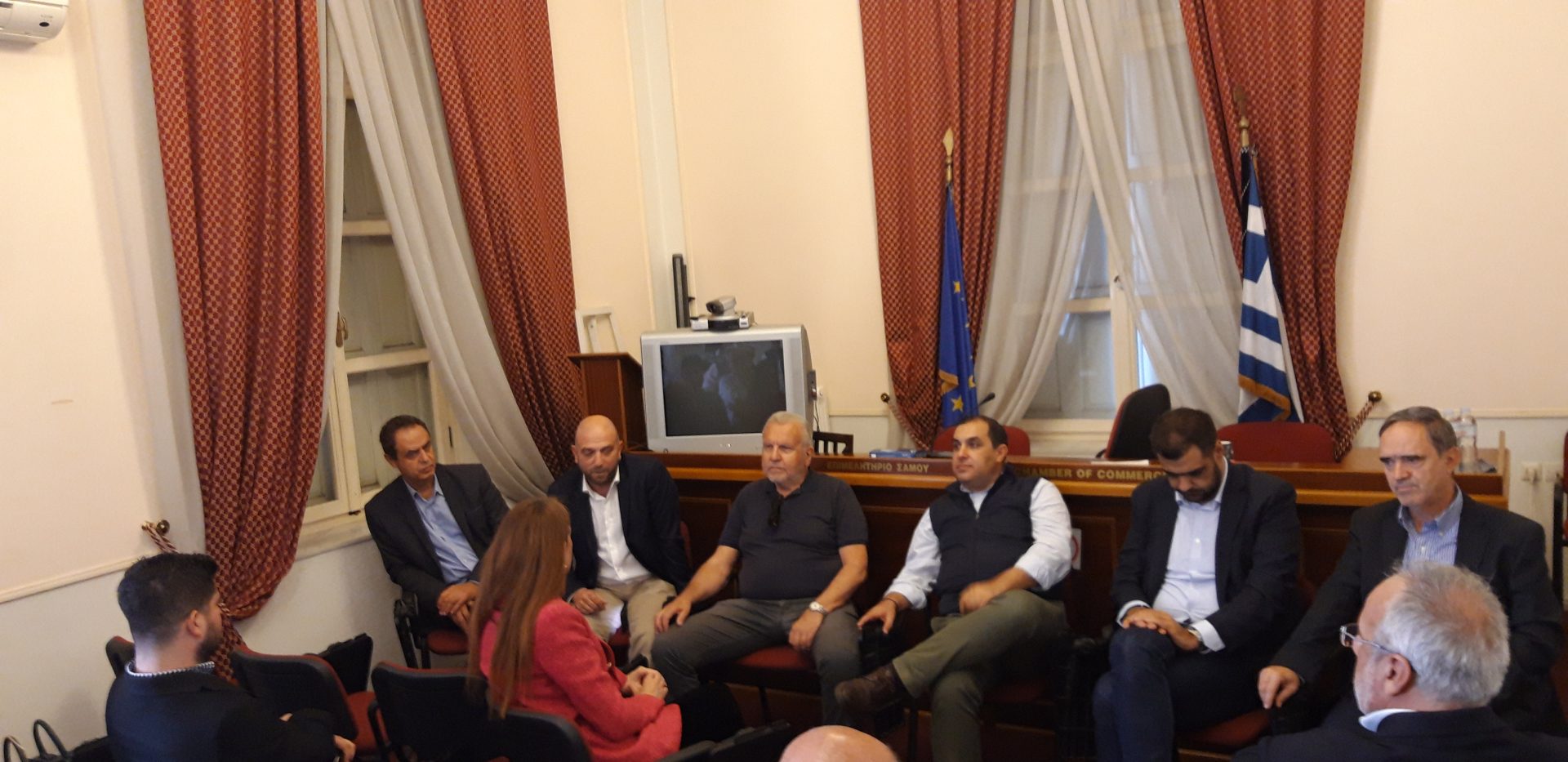Στην συνάντηση που είχαν με τον Πρόεδρο του Επιμελητηρίου Σάμου κο. Γεώργιο Κυριαζή και με μέλη του Δ.Σ. συζητήθηκαν θέματα που άπτονται των επιχειρήσεων, την ακτοπλοϊκή σύνδεση, τις επιπτώσεις του σεισμού, αύξηση τιμών ενέργειας, επιδοτήσεις κ.α.