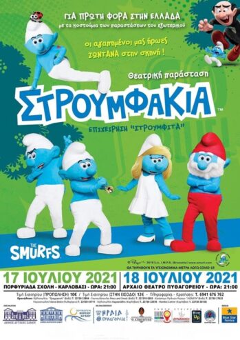 Λα-λα-λα-λα-λα-λα-λα-λα-λα Στρουμφάκια γελαστά… ένα τραγούδι που θα το τραγουδάτε όλη την μέρα. Με το τραγούδι που γεννήθηκαν οι γενιές των θαυμαστών και με λίγη μαγική σκόνη, το κοινό και της Ελλάδας σύντομα θα μεταφερθεί στον μαγικό κόσμο των πολύχρωμων μανιταριών και των γαλάζιων πλασμάτων όταν η θεατρική παράσταση «ΣΤΡΟΥΜΦΑΚΙΑ -ΕΠΙΧΕΙΡΗΣΗ ΣΤΡΟΥΜΦΙΤΑ» θα ζωντανέψει στη μεγάλη σκηνή με τα αυθεντικά κουστούμια των παραστάσεων του εξωτερικού, τα ζωντανά σκηνικά, τα μαγικά τρικ και τις υπέροχες μουσικές.