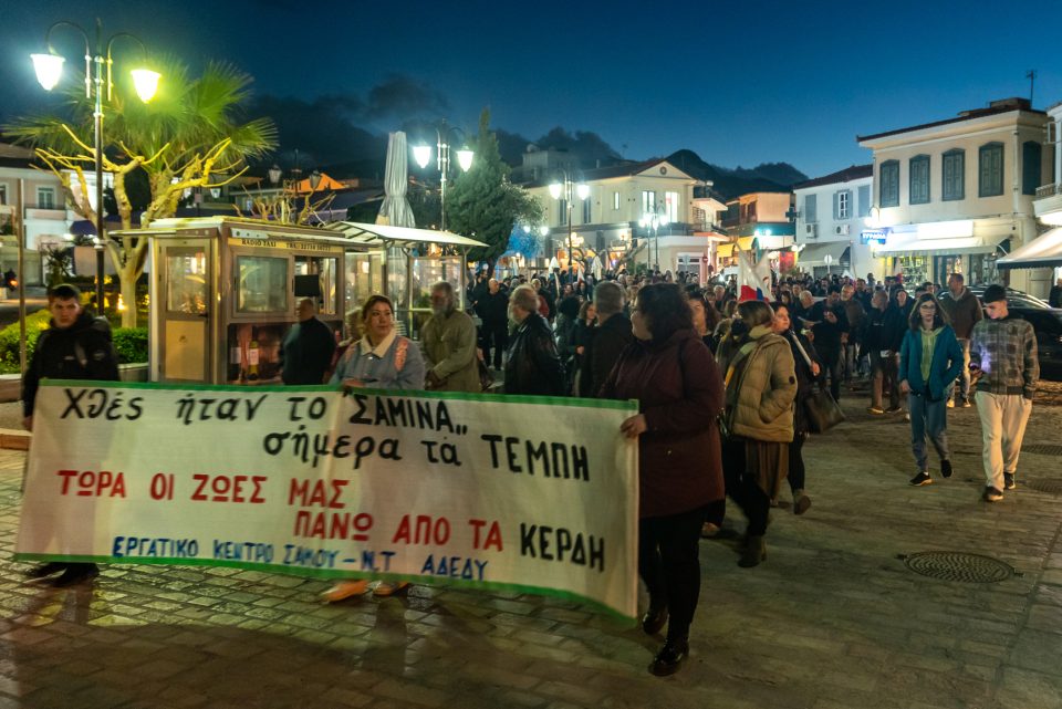 Με μεγάλη συμμετοχή κόσμου πραγματοποιήθηκαν χθες βράδυ οι συγκεντρώσεις του Εργατικού Κέντρου Σάμου, του Νομαρχιακού Τμήματος Σάμου της ΑΔΕΔΥ, των σωματείων και φορέων των νησιών μας στο Καρλόβασι και τον Άγιο Κήρυκο για το εγκληματικό δυστύχημα στα Τέμπη.