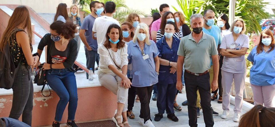 Το Δ.Σ. του συλλόγου πραγματοποίησε  σήμερα Δευτέρα 06/9/2021 ώρα  9:00 πμ έκτακτη συνέλευση για να καθοριστεί η περαιτέρω δράση του, σε ότι έχει σχέση με τις απολύσεις των ανεμβολιαστων συναδέλφων και με τα μεγάλα προβλήματα που υπήρχαν και διογκώνονται ακόμα περισσότερων λόγω των απολύσεων . Λίγο πριν ξεκινήσει η συνέλευση στο χώρο του νοσοκομείου έφτασαν με εντολή της διοίκησης δικαστικοί επιμελητές και παρέδωσαν στους συναδέλφους τα έγγραφα που τους θέτουν σε αναστολή καθηκόντων. Η συνέλευση συμφώνησε  ομόφωνα στις προτάσεις του Δ.Σ. του συλλόγου :