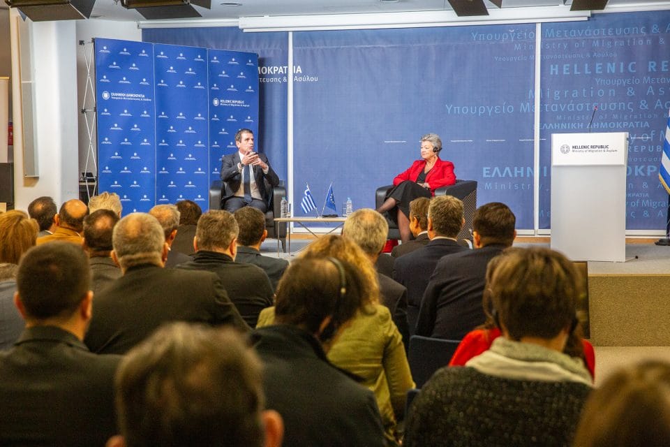 »… Και βέβαια, επιτρέψτε μου να αναφερθώ εν τάχει και σε ένα ακόμα θετικό γεγονός: την έγκριση από την Ευρωπαϊκή Επιτροπή και πάλι με τη δική σου συμφωνία, αγαπητή Ylva, της διευκόλυνσης έκδοσης ταξιδιωτικών θεωρήσεων για Τούρκους πολίτες που θα θέλουν να έρθουν για τουρισμό σε 10 ελληνικά νησιά του Ανατολικού Αιγαίου. Μία προοπτική η οποία χαιρετίστηκε και από την ίδια την Τουρκία και πιστεύω ότι χαιρετίστηκε, κ. Περιφερειάρχα, κυρίες και κύριοι Δήμαρχοι, και από τους εκπροσώπους των τοπικών κοινωνιών. Αυτό τουλάχιστον, δηλώνει και η δική σας παρουσία σήμερα εδώ, νησιά τα οποία σήκωσαν -ειδικά τα νησιά τα οποία έχουν αυτή τη στιγμή οργανωμένες δομές- ένα δυσανάλογο βάρος, μαζί με τον Έβρο, στην αντιμετώπιση του προσφυγικού. Είναι κάτι το οποίο ολόκληρη η Ευρώπη το αναγνωρίζει και προσωπικά είμαι ευγνώμων στον αγώνα όλων των τοπικών κοινωνιών και ικανοποιημένος από το γεγονός ότι σήμερα πια η κατάσταση που επικρατεί και στον Έβρο και στα νησιά του Ανατολικού Αιγαίου, όπως είπα και πριν, είναι τελείως διαφορετική και σίγουρα πολύ καλύτερη από αυτή την οποία κληρονομήσαμε το 2019. Να γνωρίζουν οι κάτοικοι των νησιών ότι στεκόμαστε πάντα δίπλα τους και βέβαια, ελπίζουμε, με ακόμα περισσότερους πόρους στη διάθεση και της πατρίδας μας».