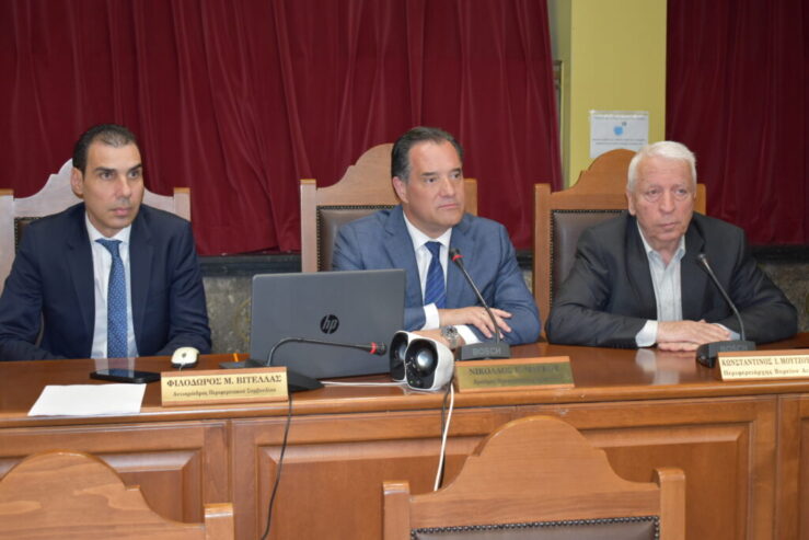 Ο Περιφερειάρχης Βορείου Αιγαίου Κωνσταντίνος Μουτζούρης υποδέχτηκε σήμερα στην αίθουσα του Περιφερειακού Συμβουλίου τον Υπουργό Υγείας Άδωνη Γεωργιάδη και τον Υφυπουργό Υγείας Μάριο Θεμιστοκλέους οι οποίοι βρίσκονται στην Λέσβο για τα εγκαίνια του νέου κτιρίου του ΕΚΑΒ Μυτιλήνης.