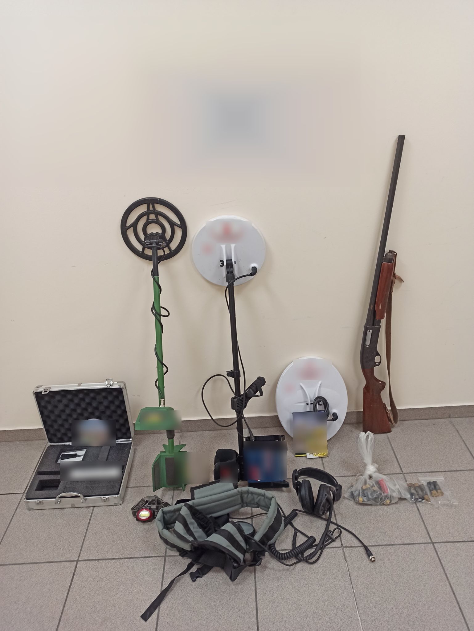 Οι ανιχνευτές μετάλλων (με παρελκόμενα είδη αυτών), για τους οποίους εξετάζεται το σύννομο της κατοχής, το κυνηγετικό όπλο, τα φυσίγγια και οι κάλυκες κατασχέθηκαν.