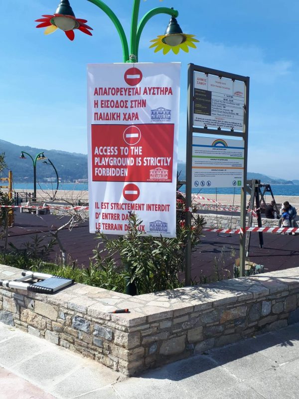 Σήμερα Σάββατο, ο Δήμος προέβη στο σφράγισμα των παιδικών χαρών στη πόλη της Σάμου, ενώ ανάρτησε ενημερωτικά πανό.