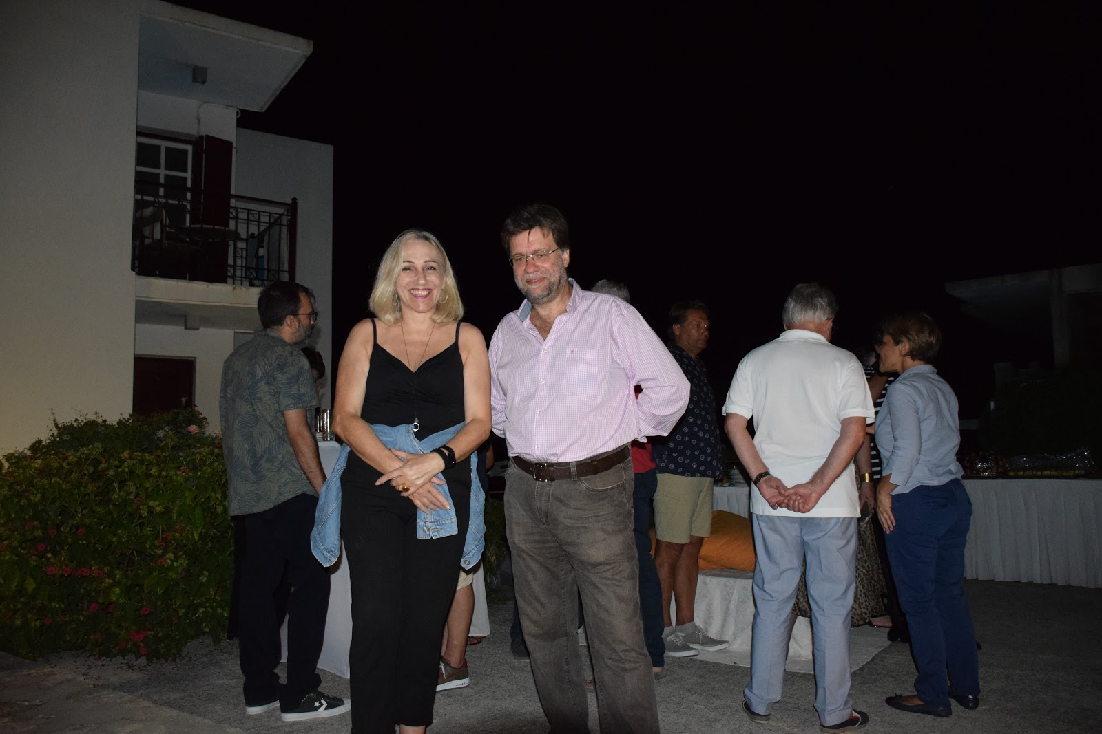 Πλησίον της πισίνας η καρδιολόγος Ελένη Γρηγοριάδου-Σκούτα και ο γεωπόνος Γιακουμής Αμυρσώνης