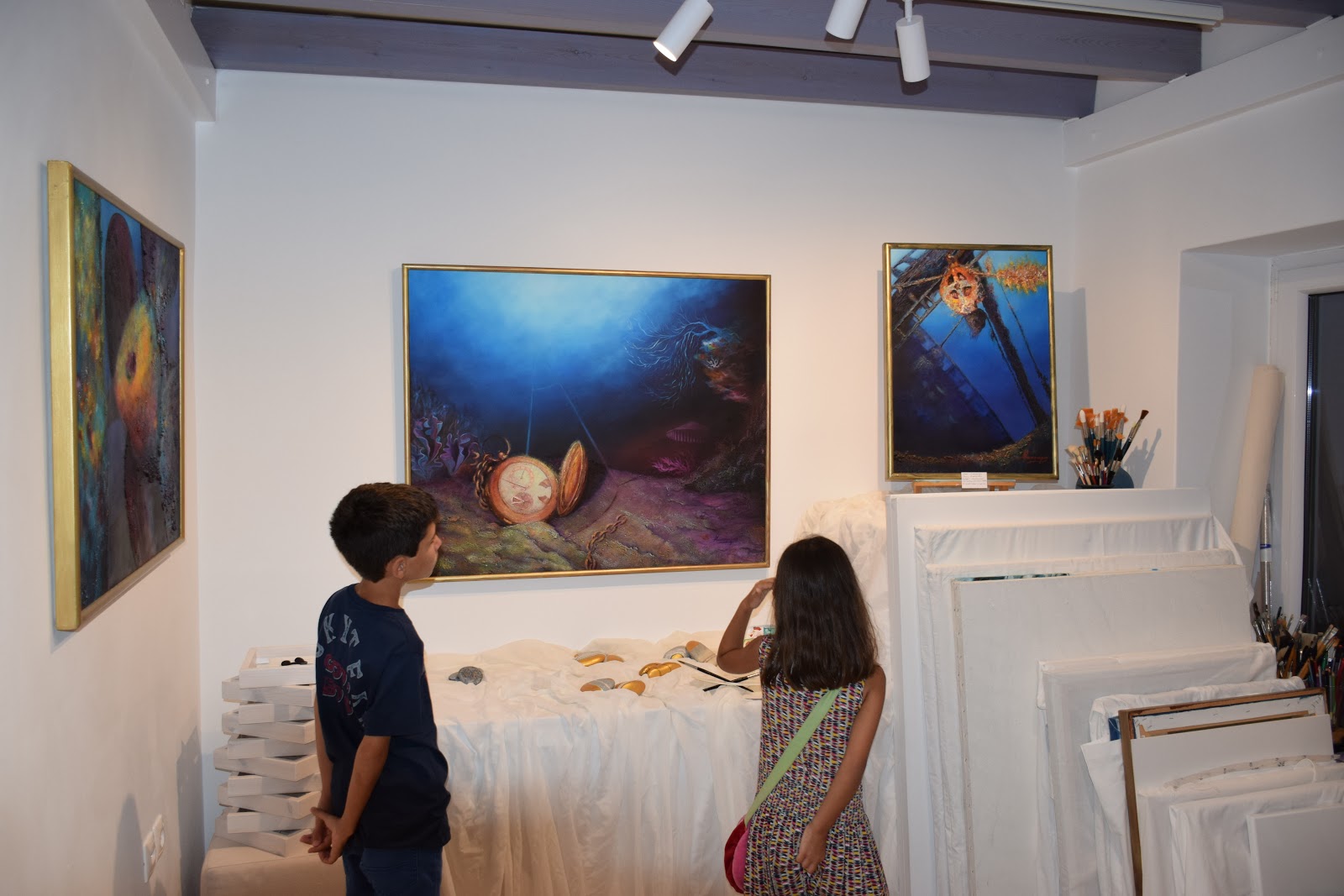 Στον επάνω όροφο της γκαλερί, το εργαστήρι της Ν. Αναστοπούλου