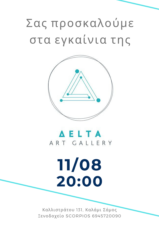 Ένα χρόνο μετά τη δημιουργία της γκαλερί Τέχνης Δelta, στην καταπράσινη περιοχή Καλαμίου της πρωτεύουσας, το βράδυ της Κυριακής, 11 Αυγούστου, πραγματοποιήθηκαν τα εγκαίνια του χώρου, συγκεντρώνοντας δεκάδες φίλους της Τέχνης που απόλαυσαν μια ξεχωριστή βραδιά θαυμάζοντας έργα, κυρίως, Σάμιων δημιουργών.