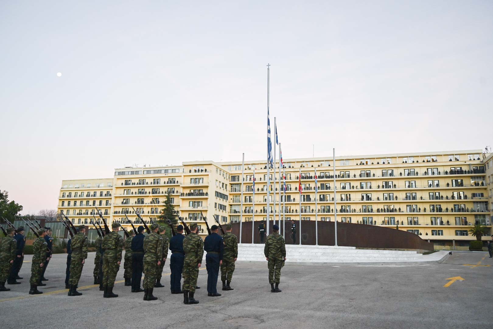 Η τελετή έγινε κατά την έπαρση της σημαίας σε μεσίστια θέση, λόγω του τριήμερου πένθους των Ενόπλων Δυνάμεων.