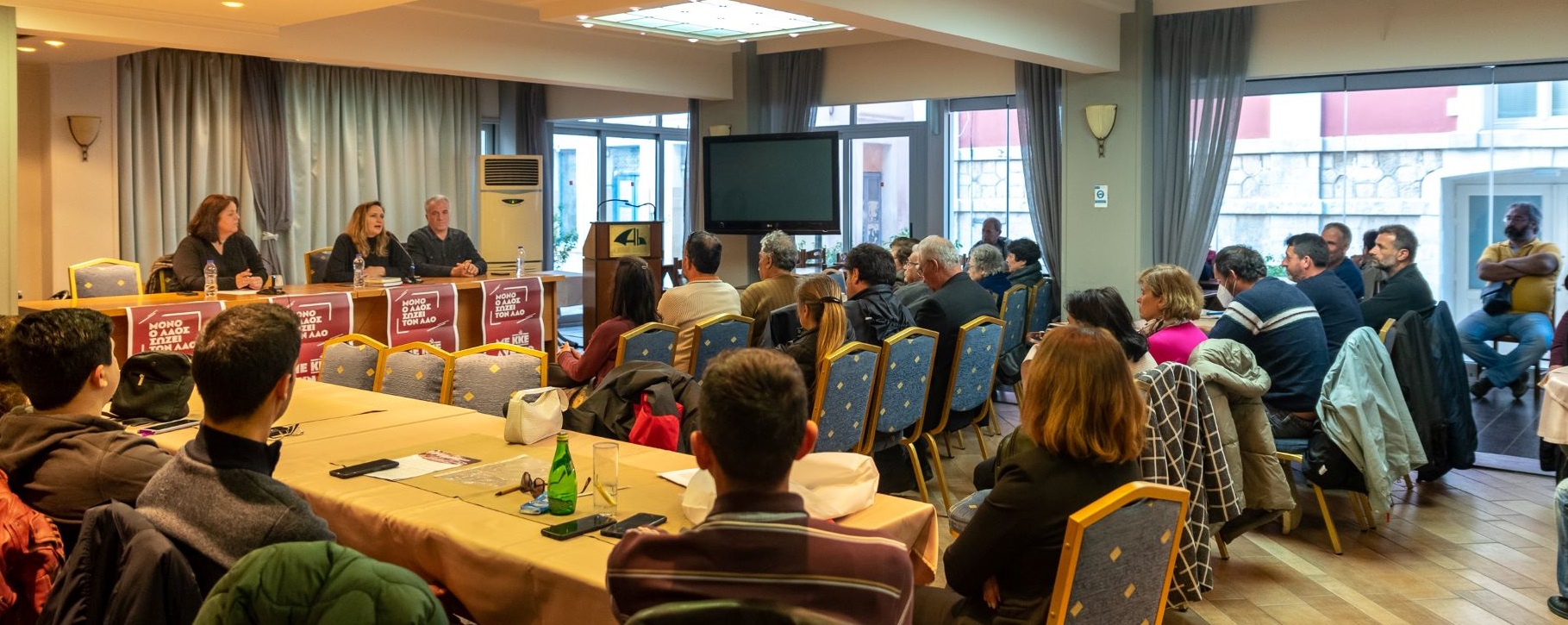 Στην κατάμεστη αίθουσα του ξενοδοχείου Αιολίς, το Σάββατο το απόγευμα 1η Απρίλη, έγινε η εκδήλωση της Τομεακής Επιτροπής Σάμου του ΚΚΕ με θέμα «Μόνο ο λαός μπορεί να σώσει το λαό. Με το ΚΚΕ για υγεία αποκλειστικά δημόσια και δωρεάν για όλους. Η πάλη του κινήματος στο νομό Σάμου».
