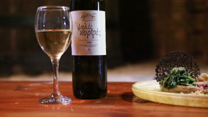Μπαρμπούνι «πεταλούδα» μαζί με φάβα και χόρτα «αρμύρα», το οποίο σερβίρεται με τις ονομαστές «Ψηλές Κορφές» το κρασί με τον πιο φινετσάτο χαρακτήρα στην έκφραση των αρωμάτων του μοσχάτου σταφυλιού και την εξαιρετική δροσιστική οξύτητα και την ικανοποιητική διάρκεια.