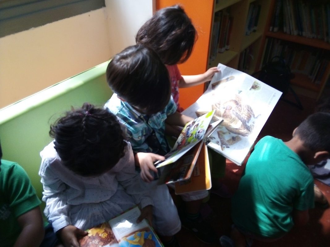 Τα παιδιά ξεναγήθηκαν στους χώρους του όμορφου κτιρίου της βιβλιοθήκης και είχαν την ευκαιρία να ξεφυλλίσουν πολλά και διαφορετικά βιβλία, να διασκεδάσουν με τις εικόνες τους, να εξοικειωθούν με επιτραπέζια παιχνίδια και να ζωγραφίσουν.