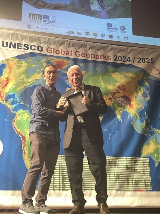 Οι διοργανωτές απένειμαν τιμητική πλακέτα στον Περιφερειάρχη για την  συμπαράσταση και την βοήθεια της Περιφέρειας Βορείου Αιγαίου στην πραγματοποίηση της εκδήλωσης, αλλά και για την συμβολή της  στην  προβολή της γεωλογικής κληρονομιάς της Λέσβου.
