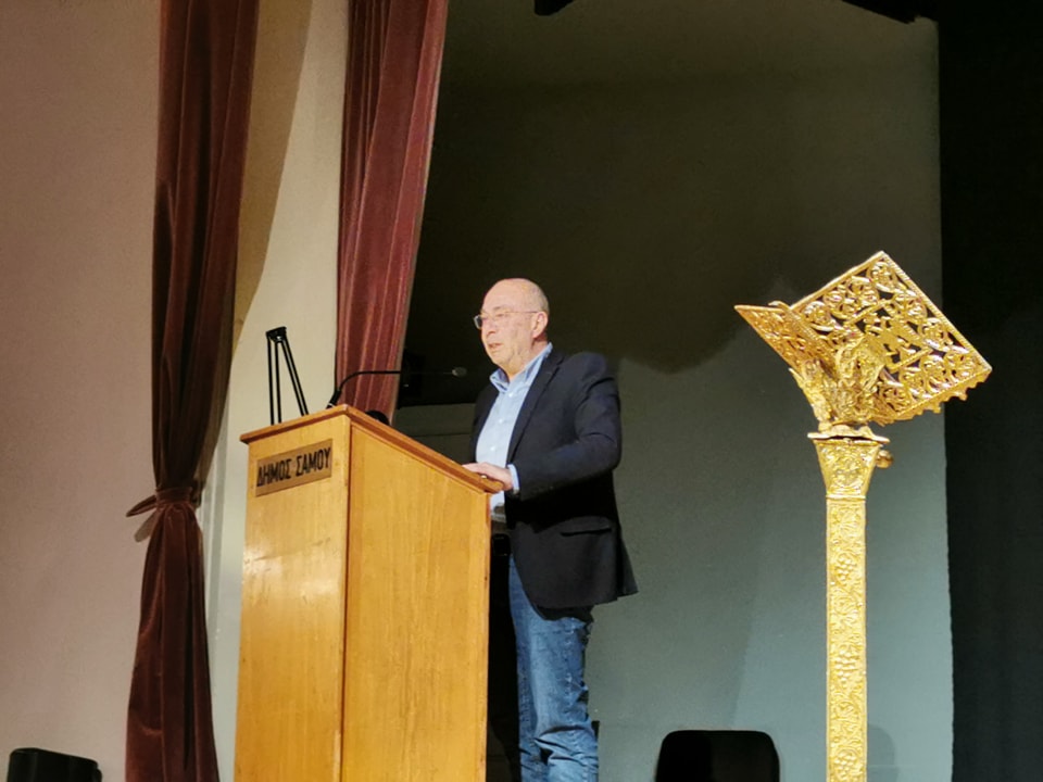 Σύντομο χαιρετισμό απηύθυνε για τον εξαιρετικό φιλόλογο, μουσικολόγο και συγγραφέα, διευθυντή της Σχολής Εκκλησιαστικής Βυζαντινής Μουσικής της Ιεράς Μητροπόλεως Σάμου, Ικαρίας και Κορσεών, κ. Γεώργιο Αγγελινάρα, ο δήμαρχος Ανατολικής Σάμου Γ. Στάντζος.