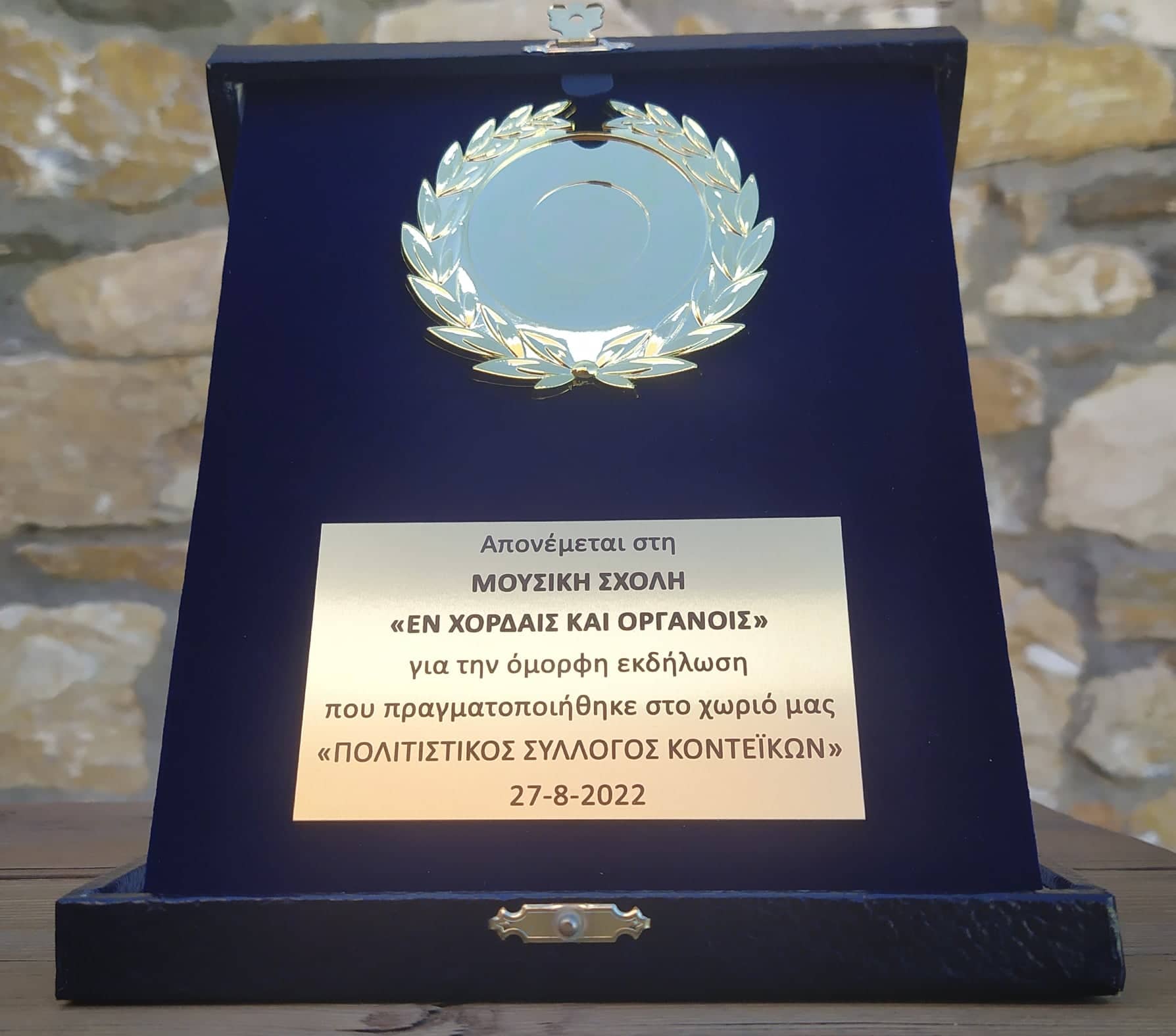 « Περικυκλωμένοι από πεύκα και κυπαρίσσια, στους κατάφυτους λόφους του σεισμόπληκτου ορεινού χωριού Κονταίικα της Σάμου, στην αυλή του παλιού σχολείου, συμμετείχαμε μουσικά. Ο σκοπός ιερός – στιγμές συγκίνησης – οι κάτοικοι και οι επισκέπτες με συντονισμό, σεβασμό και αγάπη, μας φιλοξένησαν στον τόπο τους και τραγούδησαν μαζί μας!