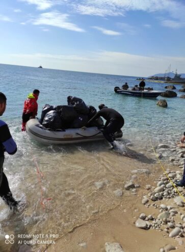 Οι εθελοντές της Ομάδας με το διασωστικό μας σκάφος Albatross, ήταν εκεί όσες μέρες χρειάστηκαν για την ανέλκυση και μεταφορά του πλοίου, συνδράμοντας τους άνδρες του Πολεμικού Ναυτικού στο έργο τους.