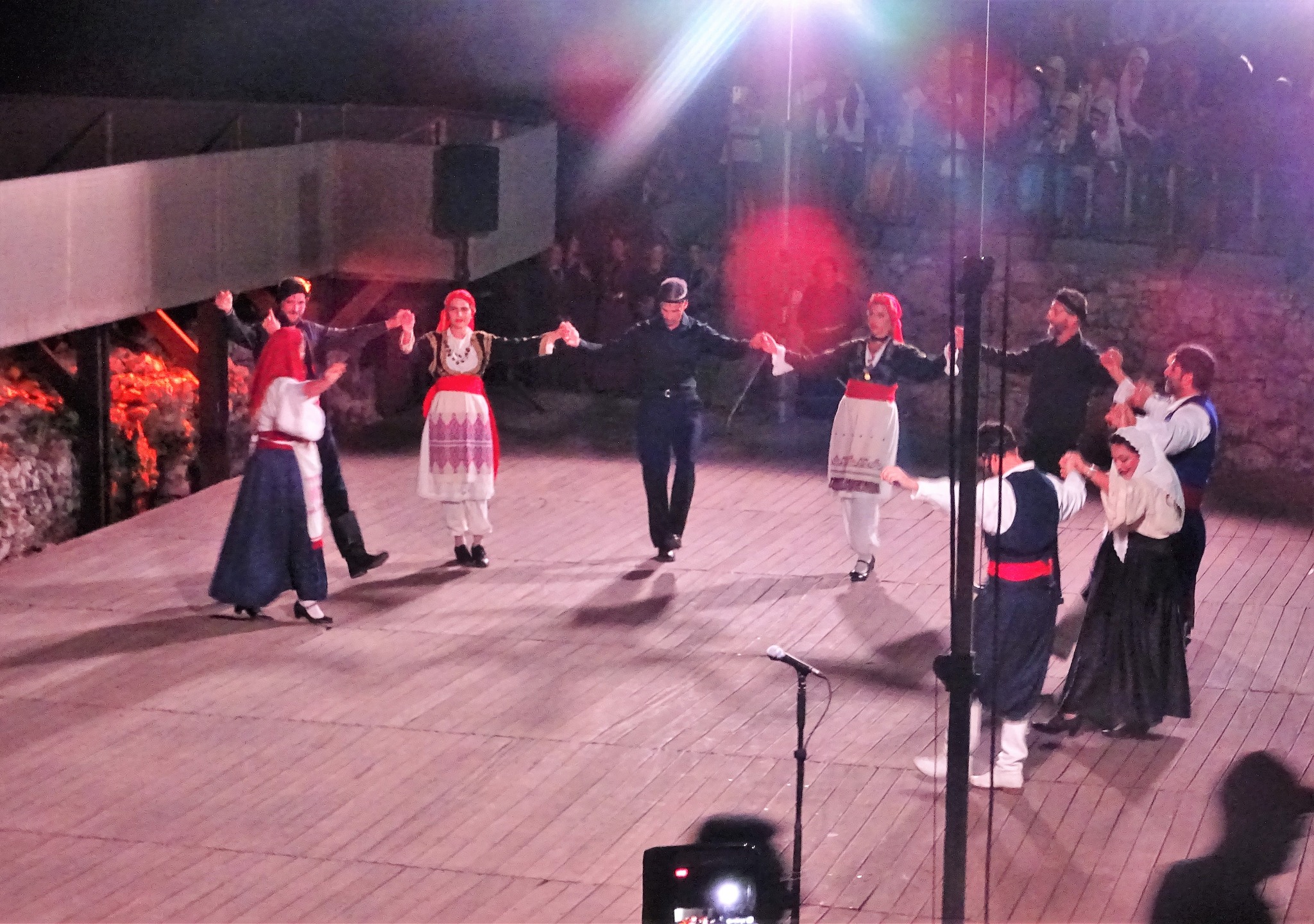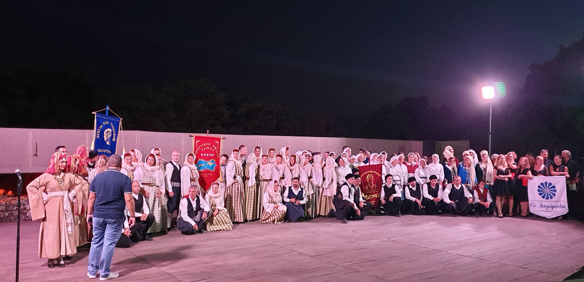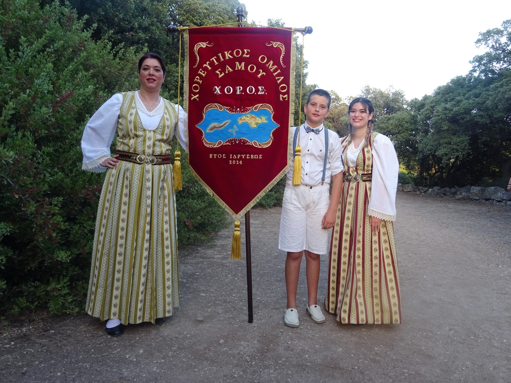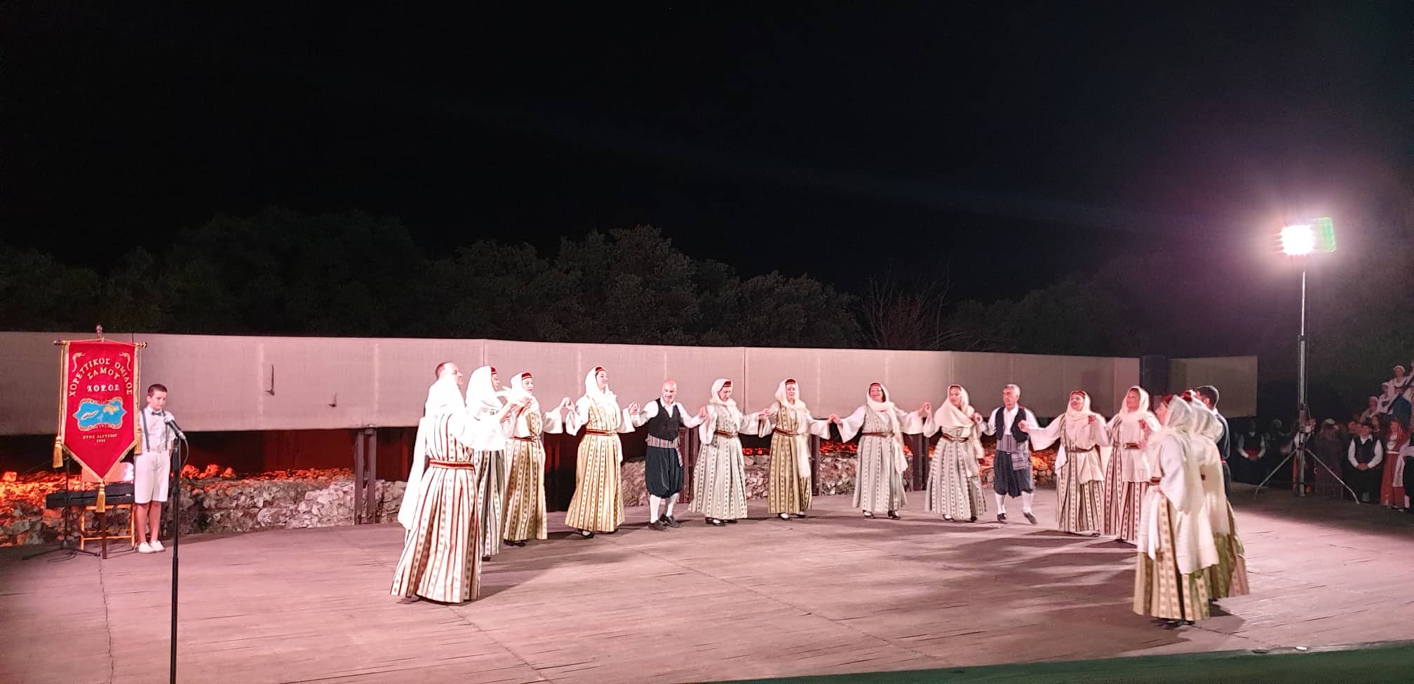 Στον κατάμεστο από θεατές επιβλητικό χώρο του Αρχαίου Θεάτρου Πυθαγορείου βρέθηκαν επί σκηνής 200 χορευτές, από τη Μουσικοχορευτική Ομάδα Πάτμου Οικογένειας του Μιχάλη Ελένη, το Λύκειο των Ελληνίδων – Παράρτημα Κω, ο Χορευτικός Όμιλος Μυκόνου ‘Μαντώ’, ο Πολιτιστικός Παραδοσιακός Χορευτικός Σύλλογος Μυκόνου ‘Οι Ανεμόμυλοι’, το Λύκειο των Ελληνίδων – Παράρτημα Σάμου, ο Πολιτιστικός Εξωραϊστικός Ψυχαγωγικός Αθλητικός Σύλλογος ‘Η ΡΙΒΑ’, το Χορευτικό Ι.Ν Συλλήψεως του Τιμίου Προδρόμου Αμπέλου και ο Χορευτικός Όμιλος Σάμου – ΧΟΡ.Ο.Σ.