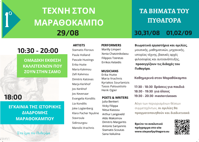 Oι επισκέπτες θα μπορούν να απολαύσουν μια βόλτα στον Μαραθόκαμπο και να γνωρίσουν καλλιτέχνες που ζουν και εργάζονται στην Σάμο, .