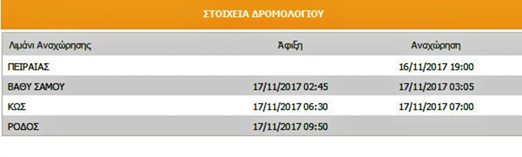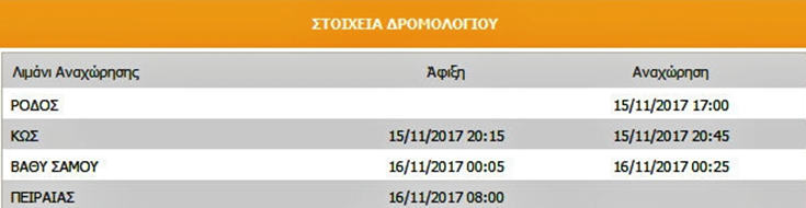 To πρόγραμμα της Πέμπτης 16 Νοεμβρίου απο Πειραιά για Ρόδο.