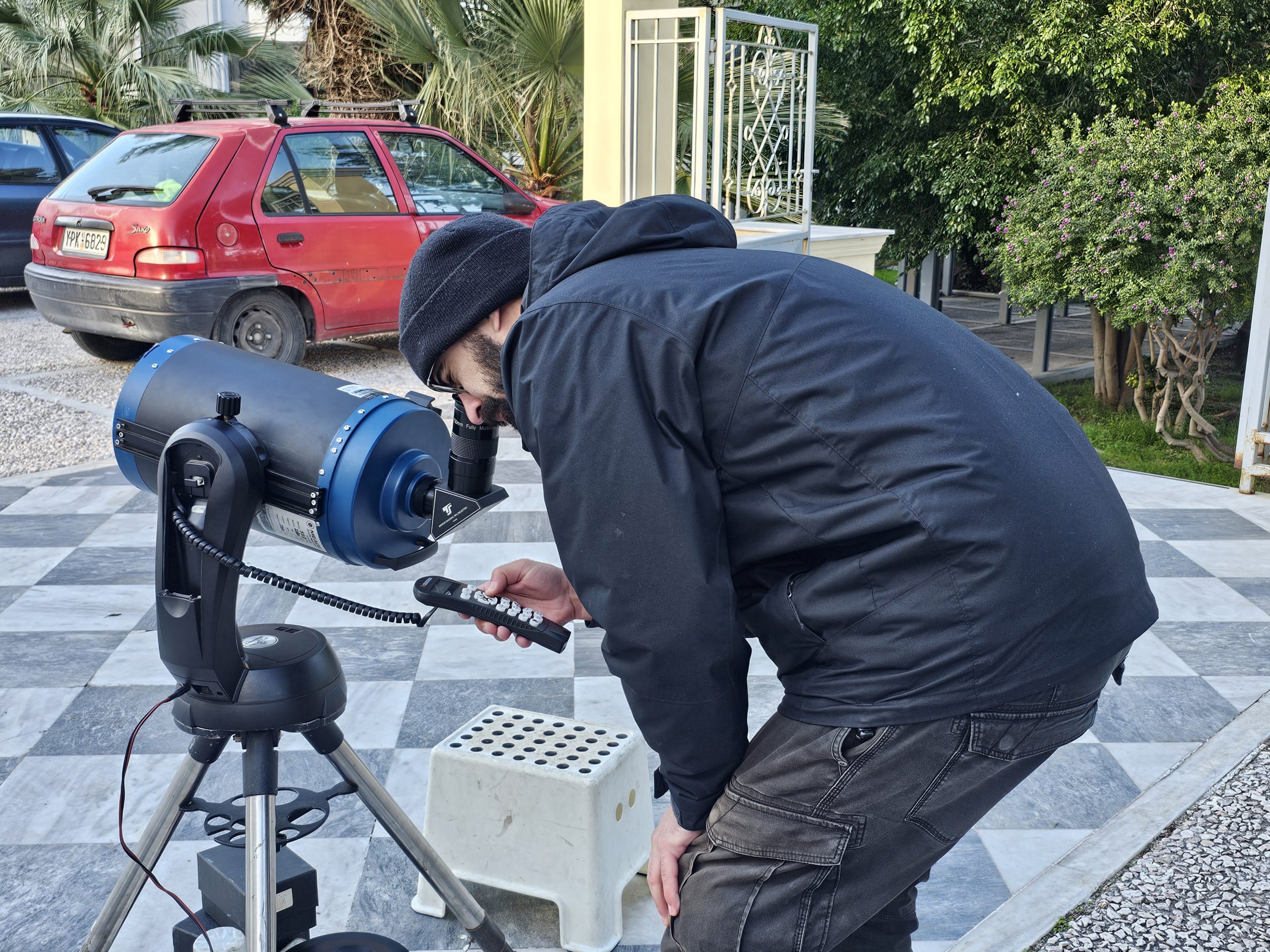 Οι μαθητές παρακολούθησαν προβολές μέσα στο Φορητό Ψηφιακό Πλανητάριο με συναρπαστικές ανακαλύψεις του διαστήματος, και στη συνέχεια παρατήρησαν με τηλεσκόπιο τον Ήλιο με ειδικό φίλτρο.