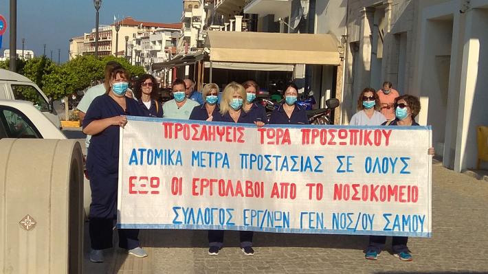 Την Δευτέρα 5-9-2022 πραγματοποιήθηκε γενική συνέλευση του συλλόγου εργαζομένων του νοσοκομείου Σάμου, στην οποία συζητήθηκαν τα εξής θέματα: α) εκχώρηση υπηρεσιών του νοσοκομείου σε ιδιωτικά εργολαβικά συνεργεία β) το νέο καθηκοντολόγιο  των Δ.Ε. νοσηλευτών. Στη συνέλευση οι εργαζόμενοι αποφάσισαν ομόφωνα και εξέφρασαν την αντίθεση τους στην εκχώρηση υπηρεσιών σε εργολάβους, (οι υπηρεσίες αυτές είναι τραπεζοκόμες, πλυντήρια και καθαριότητα), αφού αυτό θα σημαίνει απολύσεις εργαζομένων, μεγαλύτερη εντατικοποίηση της εργασίας και μεγαλύτερο κόστος για το δημόσιο.