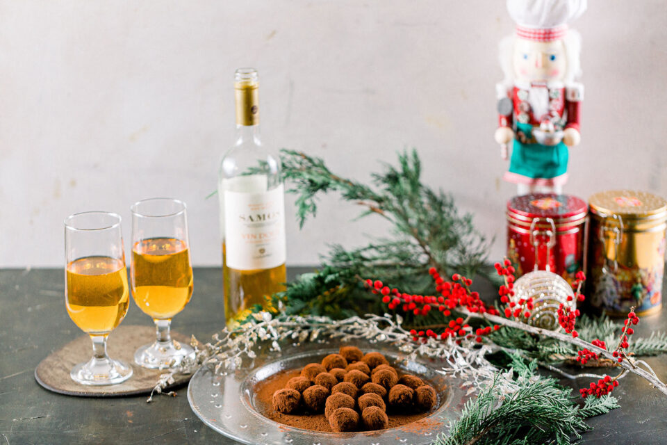 Μια εύκολη και γρήγορη συνταγή για τρουφάκια σοκολάτας με σαμιώτικο κρασί από την πρέσβειρα της ελληνικής κουζίνας στη Γαλλία, chef και συγγραφέα γαστρονομίας Ντίνα Νικολάου: