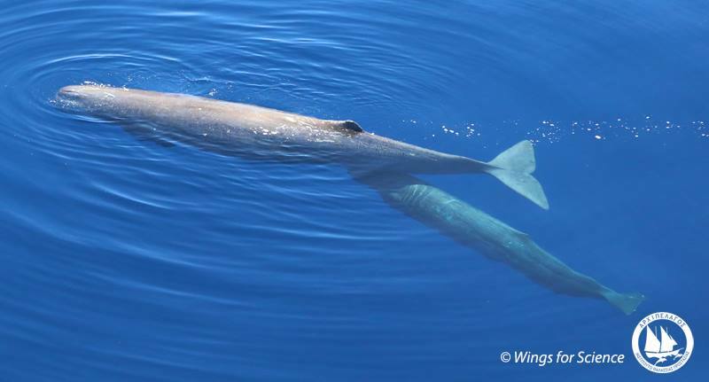 Ένα ξεχωριστό στιγμιότυπο στο Αιγαίο: θηλασμός φυσητήρα στο μπουγάζι ανάμεσα στη Μύκονο και την Ικαρία. Στη φωτογραφία διακρίνεται λίγο γάλα στην επιφάνεια της θάλασσας. Μία εικόνα που είναι αθέατη στην καθημερινότητά μας, αλλά επαναλαμβάνεται εδώ και πολλές χιλιάδες χρόνια σε αυτή την ξεχωριστή θάλασσα.