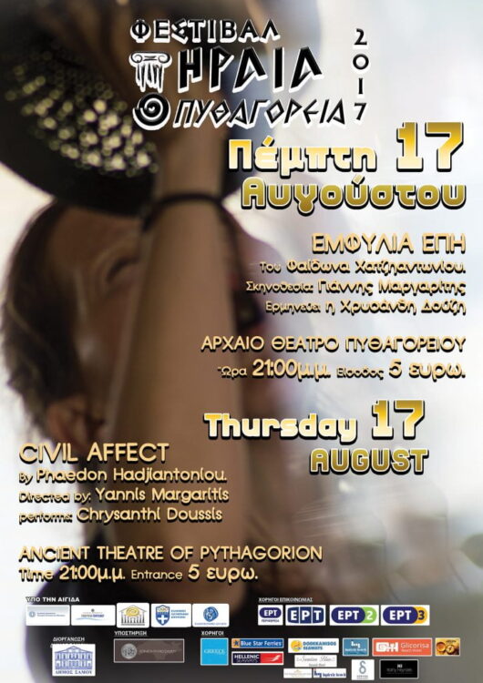 Φεστιβάλ Ηραία Πυθαγόρεια 2017. Πέμπτη 17 Αυγούστου. Αρχαίο θέατρο Πυθαγορείου .ώρα έναρξης 9 το βράδυ.είσοδος 5 ευρώ