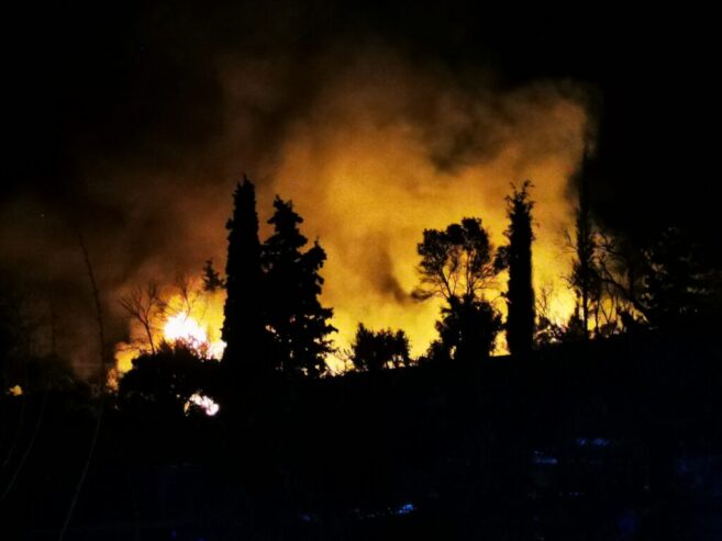 Φωτιά ξέσπασε στις 11 το βραδυ της Κυριακής στο ΚΥΤ στο Βαθύ της Σάμου από άγνωστη αιτία σε εγκαταλελειμμένα παραπήγματα στη δυτική πλευρά της δομής