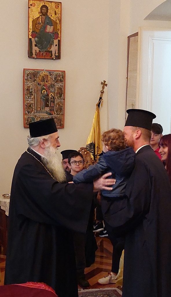 Ο Σεβασμιώτατος Ποιμενάρχης μας καλωσόρισε τους ιερείς, τις πρεσβυτέρες και τα παιδιά τους, τους μίλησε για τις Άγιες Εορτές και για την ευλογία που ζούν μέσα σε ένα Εκκλησιαστικό περιβάλλον.