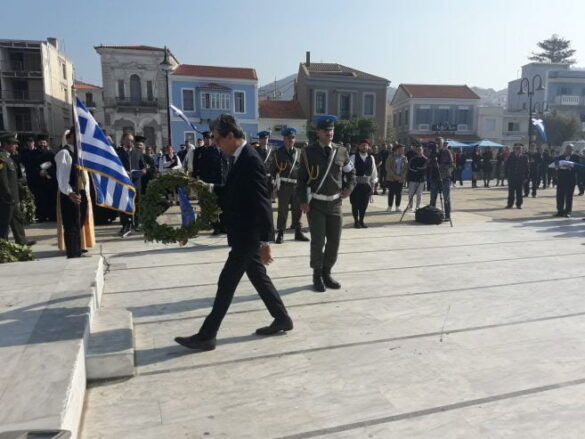 Ακολούθησε η επιμνημόσυνη δέηση στον Ανδριάντα του Θεμιστοκλή Σοφούλη και κατάθεση στεφάνων από τις αρχές του νομού.