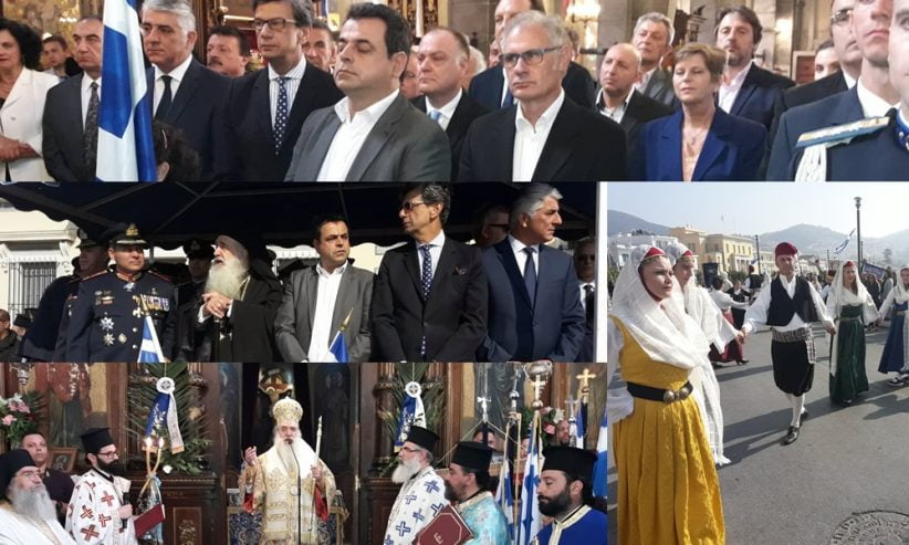 Το πρωί έγινε στον Ιερό Ναό του Αγίου Σπυρίδωνος η επίσημη δοξολογία, χοροστατούντος του Σεβασμιότατου Μητροπολίτου Σάμου & Ικαρίας κ.κ. Ευσεβίου, στο τέλος της οποία εκφωνήθηκε ο Πανηγυρικός της ημέρας.