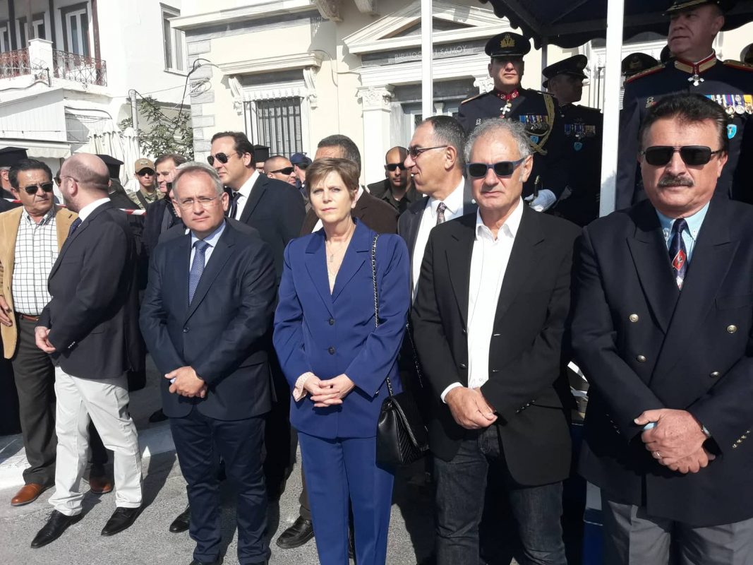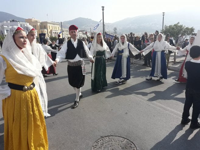 Στην παρέλαση, πήραν μέρος  μαθητές  σχολείων πρωτοβάθμιας και δευτεροβάθμιας εκπαίδευσης της πόλεως Σάμου, καθώς και αντιπροσωπείες μαθητών Γυμνασίων και Λυκείων από όλη τη Σάμο, Προσκόπων, Οδηγών, Λυκείου Ελληνίδων, Χορευτικών συγκροτημάτων, καθώς και Τμημάτων του στρατού ξηράς όπου καταχειροκροτήθηκαν από το πλήθος που είχε μαζευτεί στην παραλιακή Λεωφόρο της πόλεως Σάμου.Σε ένδειξη διαμαρτυρίας για την κυβερνητική πολιτική στο μεταναστευτικο πρόβλημα που βιώνει η Σάμος ,ο Αντιπεριφερειάρχης Σάμου κ. Νίκος Κατρακάζος δεν ανέβηκε στην εξέδρα των επίσημων,και παρακολούθησε την παρέλαση απέναντι απο τους επισήμους.
