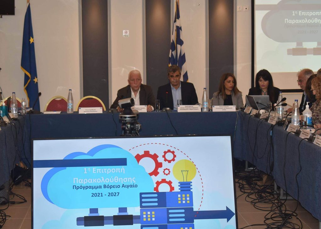 Ο Περιφερειάρχης Βορείου Αιγαίου Κωνσταντίνος Μουτζούρης προήδρευσε σήμερα 2.12.2022 στην 1η Συνεδρίαση της Επιτροπής Παρακολούθησης του Προγράμματος «Βορείου Αιγαίου 2021-2022» σε ξενοδοχείο της Μυτιλήνης. Από πλευράς Περιφέρειας το παρών έδωσαν ο Αντιπεριφερειάρχης Π.Ε Λέσβου Πανάγος Κουφέλος, η Αντιπεριφερειάρχης Οικονομικών και Πολιτισμού Αναστασία Αντωνέλλη, στελέχη της ΕΥΔ και εμπλεκόμενων υπηρεσιών της Περιφέρειας.