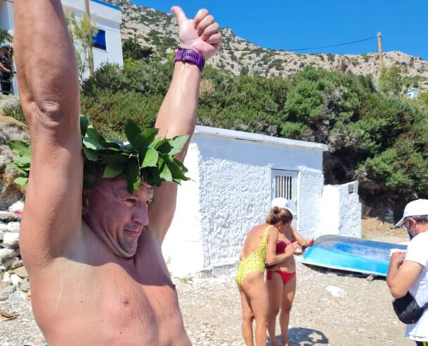 1ος ο Γιώργος Σταυρόπουλος. Κολύμβησε 10 ναυτικά μίλια γύρω από την Θύμαινα σε 4 ώρες και 6 λεπτά.