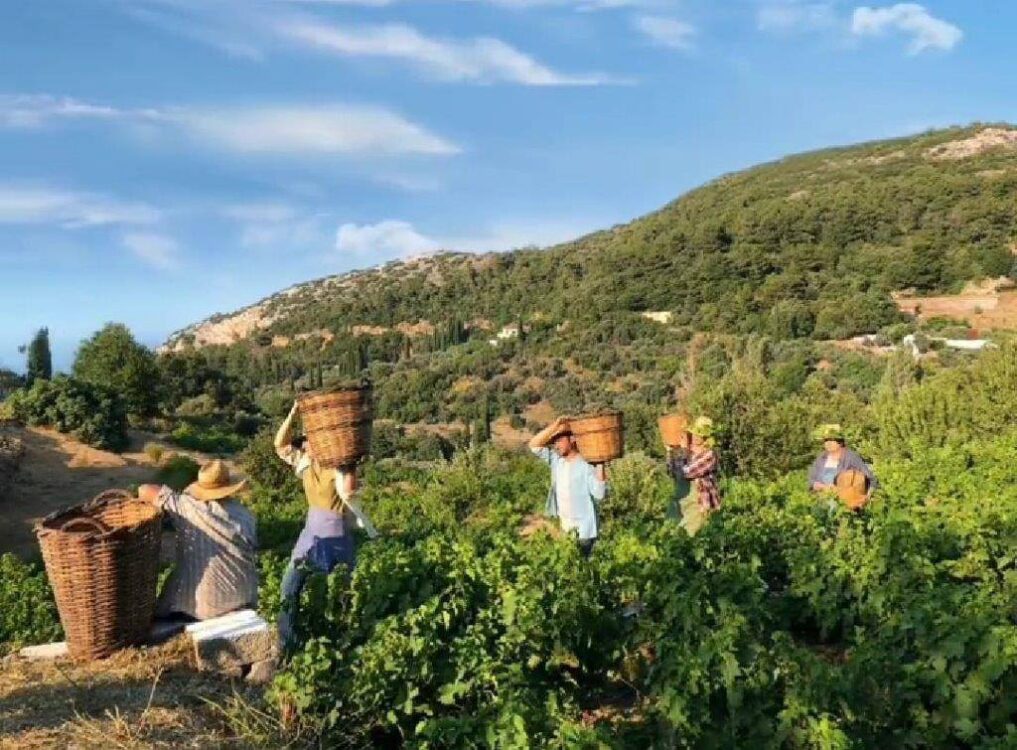 Οι αμπελουργοί της Σάμου καλλιεργούν χειρωνακτικά σε ορεινές πεζούλες ξερολιθιάς, με μικρή στρεμματική απόδοση που δεν ξεπερνά τα 1.000 κιλά σταφυλιού ανά στρέμμα.