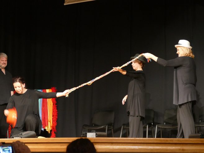 Η ομάδα Playback Nuevo “ζωντάνεψε” επί σκηνής τις αφηγήσεις εκπαιδευτικών, γονέων, μαθητών με τρόπο άλλοτε συγκινητικό, άλλοτε χιουμοριστικό, φωτίζοντας κι άλλες πλευρές στις αναμνήσεις, τις ανάγκες, τους φόβους, τους προβληματισμούς και τις ιστορίες περηφάνειας που γέμισαν την αίθουσα.