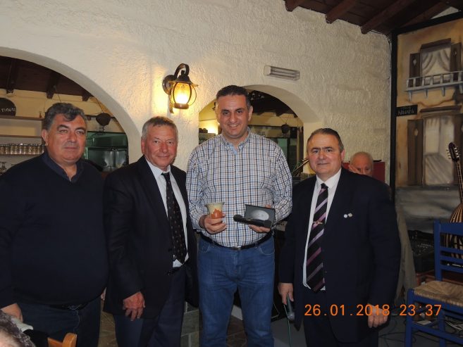 δ) τον πρόεδρο της ΙΡΑ ΚΑΡΔΙΤΣΑΣ κ. Ζαρχανή Γεώργιο τίμησαν και πρόσφεραν μια πένα ο αντιπρόεδρος του Συνδέσμου Στρατηγός ε.α κ. Μανωλιάδης Δημήτριος και μια δίκαια κούπα του Πυθαγόρα το μέλος του Συνδέσμου κ. Κουλουκτσής Βασίλειος.