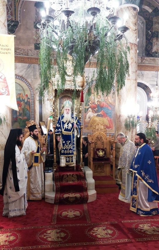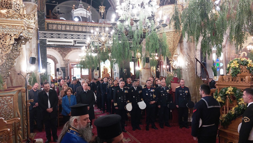 Στη συνέχεια τέλεσε επίσημη Δοξολογία για την ημέρα εορτής του Πολεμικού Ναυτικού και του Λιμενικού Σώματος, επεσήμανε δε το αξιόμαχο του Πολεμικού μας Ναυτικού και του Λιμενικού μας Σώματος και ευχήθηκε να παραμένουν άγρυπνοι φρουροί των γαλάζιων μας θαλασσών για να μην αφήσουν κανένα βέβηλο εχθρικό πόδι να κουρσεύσει τα ακριτικά Νησιά μας.