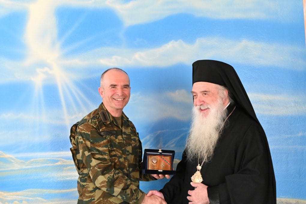 Ο Σεβασμιώτατος ευχήθηκε το φως της Ανάστασης να καθοδηγεί το Στράτευμα, χαρίζοντας νίκες, επιτυχίες, υγεία και την ευλογία του Αναστάντος Χριστού. Ως ενθύμιο της επίσκεψης, προσέφερε στον Αρχηγό κέρινο πασχαλινό αυγό, λαμπάδες και την έκδοση “Μονοπάτια της Πίστης”. Από την πλευρά του, ο Αρχηγός ΓΕΣ προσέφερε πλακέτα και αντίγραφο ράβδου Ανώτατου Αξιωματικού.