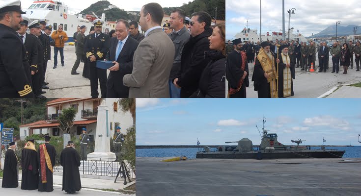Στο λιμάνι Καρλοβάσου απο νωρίς το πρωί ήταν το Παράκτιο περιπολικό “Κύκνος”  του Πολεμικού Ναυτικου,για να αποδώσει τιμές στους Ήρωες. Αναμνηστικές πλακέτες αντάλλαξαν ο Αντιπεριφερειάρχης Σάμου κ. Νίκος Κατρακάζος και ο Υποπλοίαρχος ΠΝ Γεώργιος Μανίκας.Στην τελετή, στεφάνι κατέθεσαν στο μνημείο που έχει ανεγερθεί προς τιμήν τους, ο Αντιπεριφερειάρχης Σάμου κ. Νίκος Κατρακάζος, ο Σεβασμιότατος μητροπολίτης Σάμου κ.κ Ευσέβιος, ο Ταξίαρχος Διοικητής της 79 ΑΔΤΕ κ. Αντώνης Κωστάκης, ο Διοικητής της Πυροσβεστικής Υπηρεσίας Σάμου κ. Παναγιώτης Κοτρίδης, ο Αστυνομικός Διευθυντής Σάμου κ. Δημήτριος Μαϊστρέλλης, ο Λιμενάρχης Σάμου κ.Νίκος Κωνσταντέλλης, ο Αντιπλοίαρχος ΠΝ Ιωάννης Τρακαδας,o πρόεδρος του Συνδέσμου Εφέδρων Αξιωματικών Σάμου κ.Εμμανουήλ Πέτρου και ο Αντιδήμαρχος Σάμου κ. Τάσος Καλατζής.