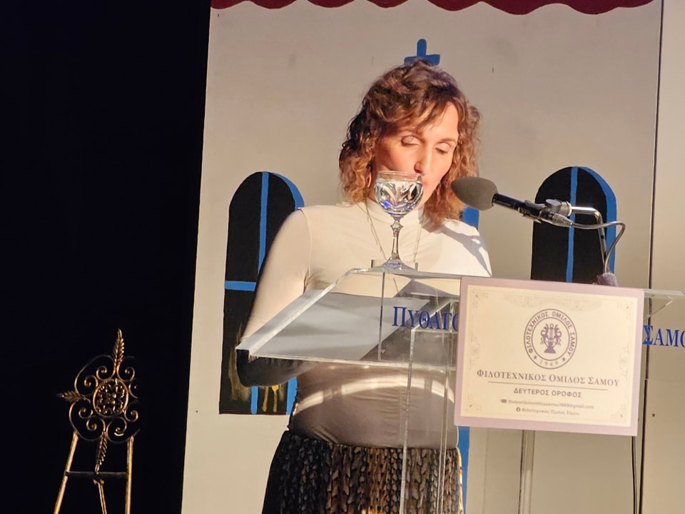 Στην αρχή και μετά τον χαιρετισμό του προέδρου του Φιλοτεχνικού ΄Ομίλου κ. Γιώργου Σακερλή, επιδόθηκε αναμνηστική πλακέτα στον Αντιπεριφερειάρχη Σάμου κ. Ελισσαίο Μαυρατζώτη, σε ανταπόδοση της υποστήριξης της εκδήλωσης από την Περιφέρεια.