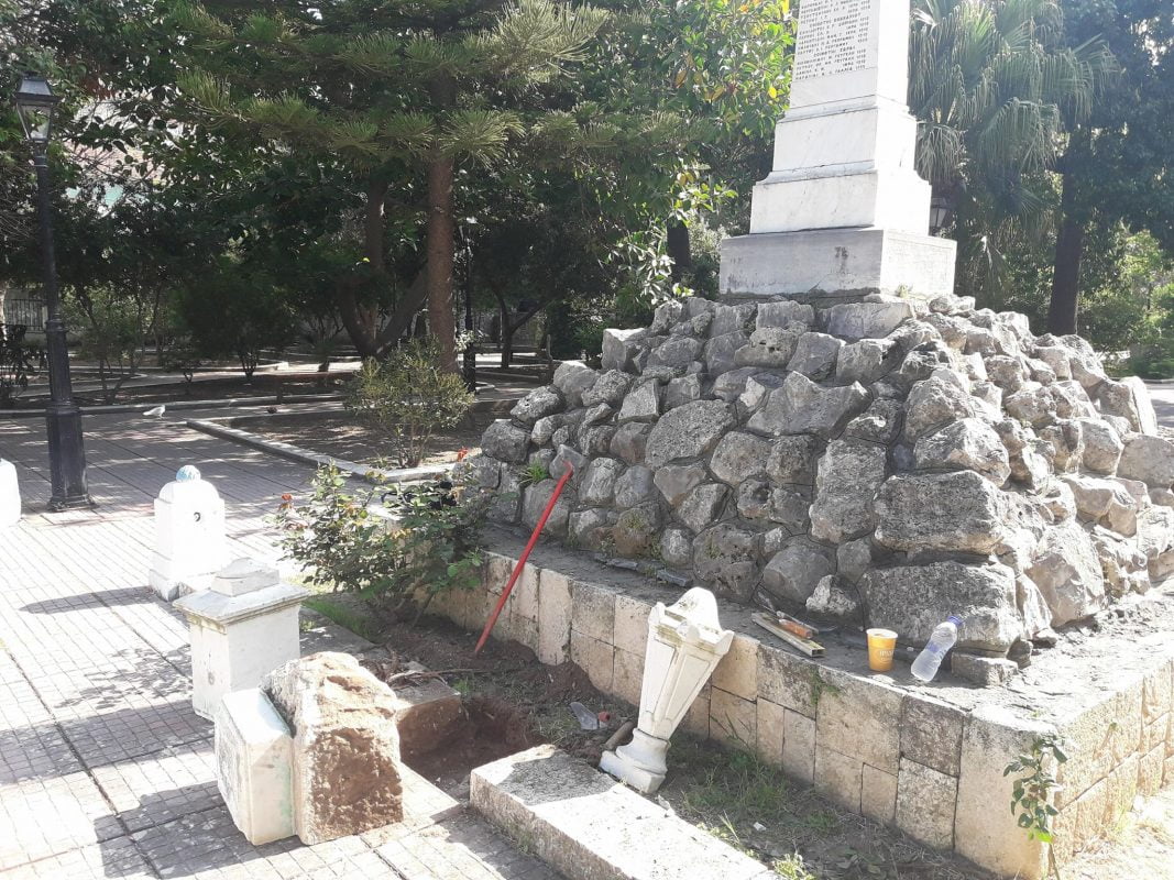 “Άγνωστοι” νωρίς τα ξημερώματα της Τρίτης του Πάσχα , προξένησαν διάφορες φθορές, στο μνημείο των πεσόντων που υπάρχει στο εσωτερικό του κήπου.