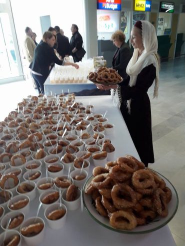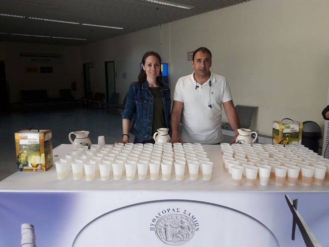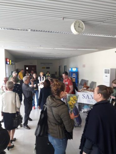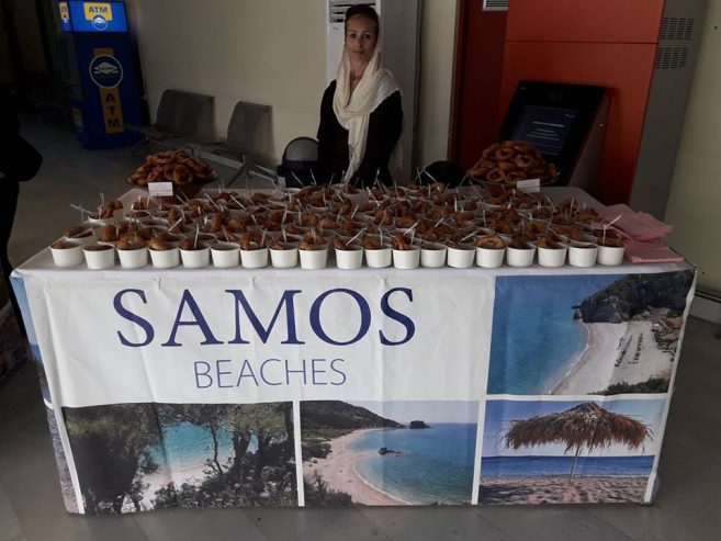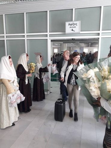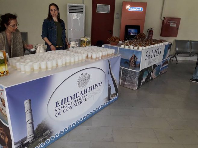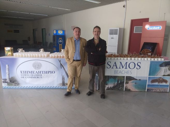 Το επιμελητήριο Σάμου, διοργάνωσε με την άφιξη του αεροσκάφους άρτια τελετή υποδοχής με το χορευτικό συγκρότημα του “Λυκούργου”  με ντόπια κεράσματα και Σαμιώτικο κρασί.