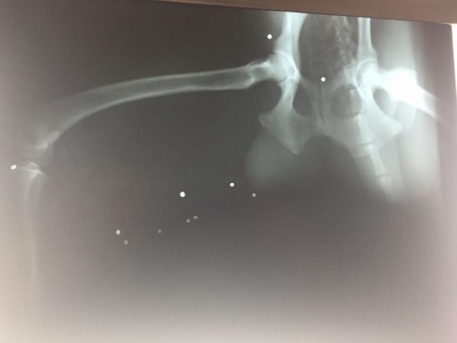 Η ακτινογραφία που δείχνει τα σκάγια στο σώμα του άτυχου σκύλου