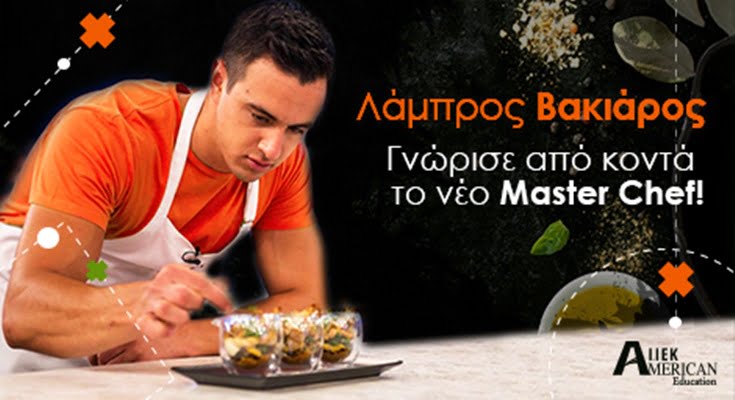 Την Τετάρτη 20 Σεπτεμβρίου, ο νέος Έλληνας Master Chef, Λάμπρος Βακιάρος θα φιλοξενηθεί στο IΙEK American όπου και θα μιλήσει σε όλους τους φίλους της μαγειρικής τέχνης.