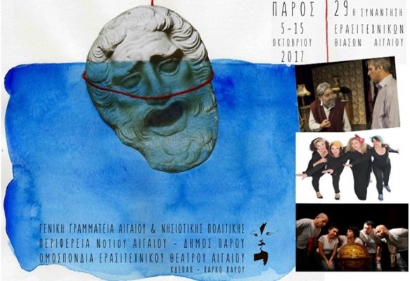 Στο νησί της Πάρου από τις 5 έως τις 15 Οκτωβρίου 2017, πρόκειται να φιλοξενήσει για πρώτη φορά την 29η Συνάντηση Ερασιτεχνικών Θιάσων Αιγαίου, έναν σπουδαίο πολύχρονο πολιτιστικό θεσμό που αναδεικνύει την τοπική θεατρική δημιουργία και αποτελεί βήμα έκφρασης της ερασιτεχνικής υποκριτικής τέχνης στο χώρο του Αιγαίου.