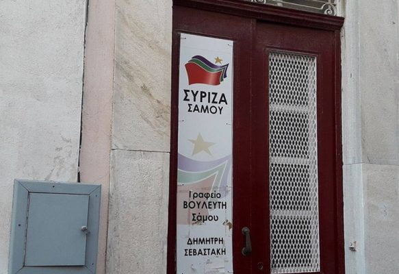 Παράσταση διαμαρτυρίας για το προσφυγικό έξω από το γραφείο του βουλευτή Σάμου
